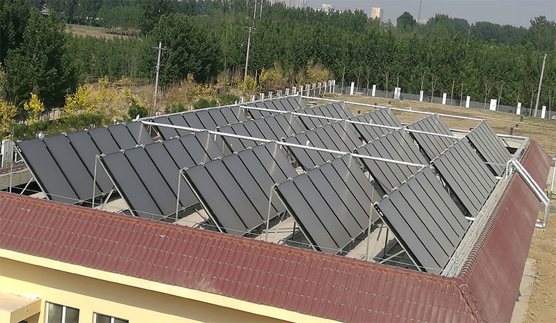 客戶簡(jiǎn)介:涿州城區(qū)地表水廠位于保定市涿州市,是南水北調(diào)的配套項(xiàng)目,建設(shè)日用水量10萬立方米,總投資2.1億元,該廠區(qū)熱源采用地源熱泵+太陽能蓄熱調(diào)峰的系統(tǒng)形式。夏季提供冷媒溫度為7~12℃,冬季熱媒供回水溫度為45/40℃;水廠總冷負(fù)荷130KW,熱負(fù)荷310KW,由地源熱泵系統(tǒng)供應(yīng)熱量250KW,剩余60KW由太陽能系統(tǒng)進(jìn)行調(diào)峰,過渡季節(jié)由太陽能進(jìn)行蓄能。太陽能集熱器安裝于地源熱泵機(jī)房屋面,總計(jì)安裝平板太陽能集熱器200平米,太陽能系統(tǒng)功率6.5KW。