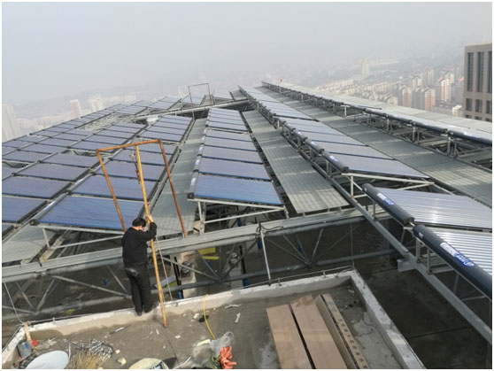 工程規(guī)模:40噸熱水工程太陽(yáng)能設(shè)備供貨及安裝。