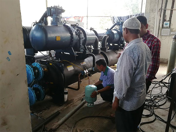 問題描述:項(xiàng)目前期由代理商找當(dāng)?shù)匕惭b隊(duì)伍自己安裝,由于代理商缺乏系統(tǒng)安裝經(jīng)驗(yàn),導(dǎo)致安裝過程中冷卻塔地基尺寸弄錯(cuò),甲方提供的輔材不全,導(dǎo)致現(xiàn)場(chǎng)材料不全,我公司及時(shí)派出專業(yè)現(xiàn)場(chǎng)工程師的趕往項(xiàng)目現(xiàn)場(chǎng)指導(dǎo)安裝,我公司現(xiàn)場(chǎng)安裝指導(dǎo)人員通過和代理商及甲方人員溝通,克服重重困難,經(jīng)過兩個(gè)月,系統(tǒng)安裝完畢并正常運(yùn)行,并培訓(xùn)了甲方客戶的操作人員,代理商通過這個(gè)系統(tǒng)項(xiàng)目積累了寶貴的安裝經(jīng)驗(yàn)。