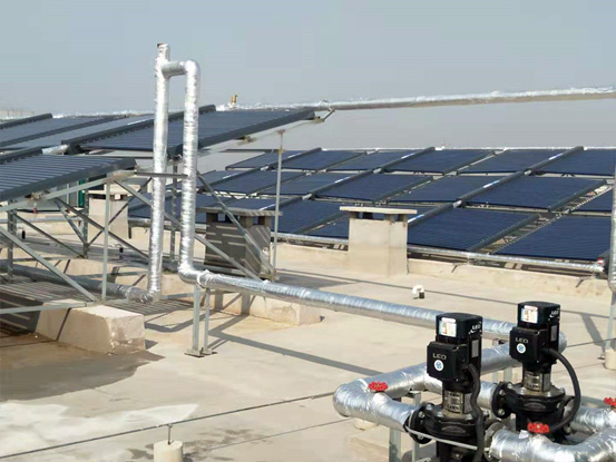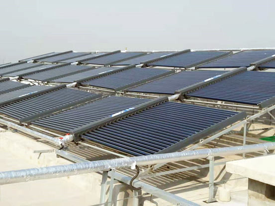 此太陽能熱水系統(tǒng),采用格瑞德高效全玻璃真空管集熱器,總集熱面積210平方米,集熱水箱1,個(gè)恒溫水箱1個(gè),恒溫水箱和電熱水爐結(jié)合形成光電互補(bǔ)的形式,保持熱水恒溫,提供24小時(shí)不間斷熱水,集熱水箱提供預(yù)熱供水,供給恒溫水箱。系統(tǒng)全自動(dòng)運(yùn)行,具有防凍、房炸管、高溫保護(hù)、自動(dòng)補(bǔ)水、恒溫恒壓供水等功能。
