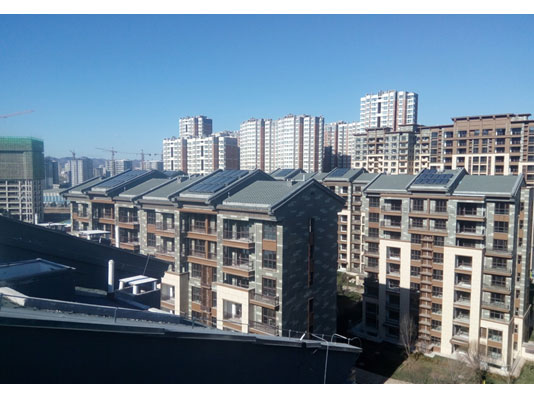 采用太陽能集中集熱分戶換熱系統(tǒng),太陽能集熱器集中安裝在坡屋面上,控制系統(tǒng)安裝在水箱間內(nèi),每戶一臺(tái)60L太陽能換熱水箱、并帶有輔助電加熱,由太陽能集中集熱并通過傳熱介質(zhì)給每戶水箱加熱,同時(shí)電加熱與太陽能互補(bǔ),滿足用戶的熱水需求。
