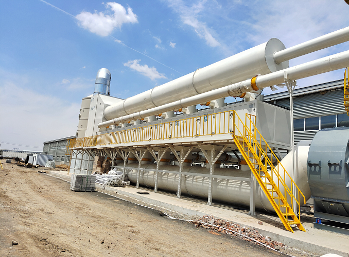 廢氣污染源處加裝收集罩,通過收集管道和引風機進入噴淋洗滌塔、除霧器、干式預(yù)處理、催化燃燒等處理系統(tǒng)。通過噴淋洗滌塔對廢氣進行水洗降溫,在水洗降溫的過程中同時對廢氣進行過濾處理,降溫后的氣體進入除霧器進行除霧處理,后進入干式預(yù)處理進行再次過濾(對后面的設(shè)備起到保護作用),之后采用活性炭吸附主要是吸附去除VOCs,且起到富集的作用使其滿足催化氧化所需濃度條件。脫附過程是為了使吸附在活性炭上的VOCs分子脫離活性炭而進入到后端催化氧化工藝進行去除,從而延長活性炭的使用壽命。CO催化氧化:經(jīng)過前一階段從活性炭上脫附下來的VOCs分子經(jīng)過催化氧化徹底轉(zhuǎn)變成干凈的CO2和H2O。