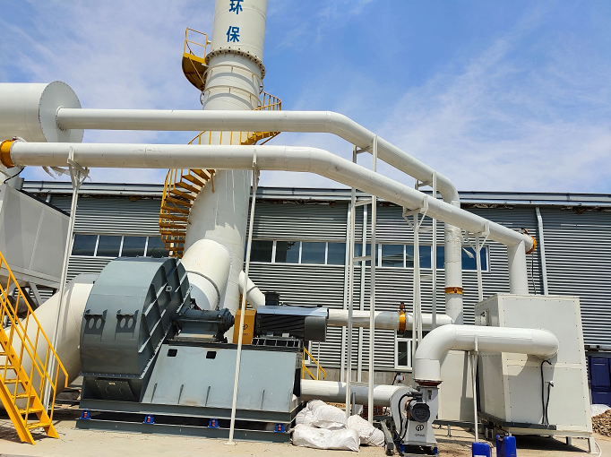 1臺預(yù)處理設(shè)備、1臺噴淋洗滌塔、1臺除霧器、1臺催化燃燒設(shè)備、1臺活性炭凈化裝置、3臺風機