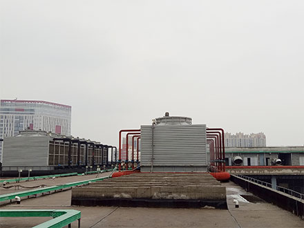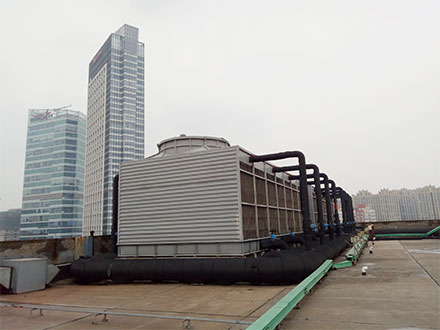 本工程冷凍水系統(tǒng)供水溫度7℃,回水溫度12℃;循環(huán)冷卻水系統(tǒng)供水溫度37℃,回水溫度32℃,濕球溫度26.8°C,冷卻水系統(tǒng)采用開式冷卻塔循環(huán)冷卻。