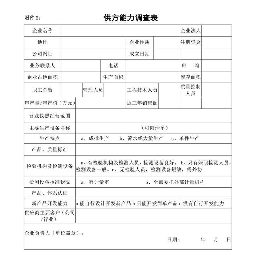 附件二:供方能力調(diào)查表