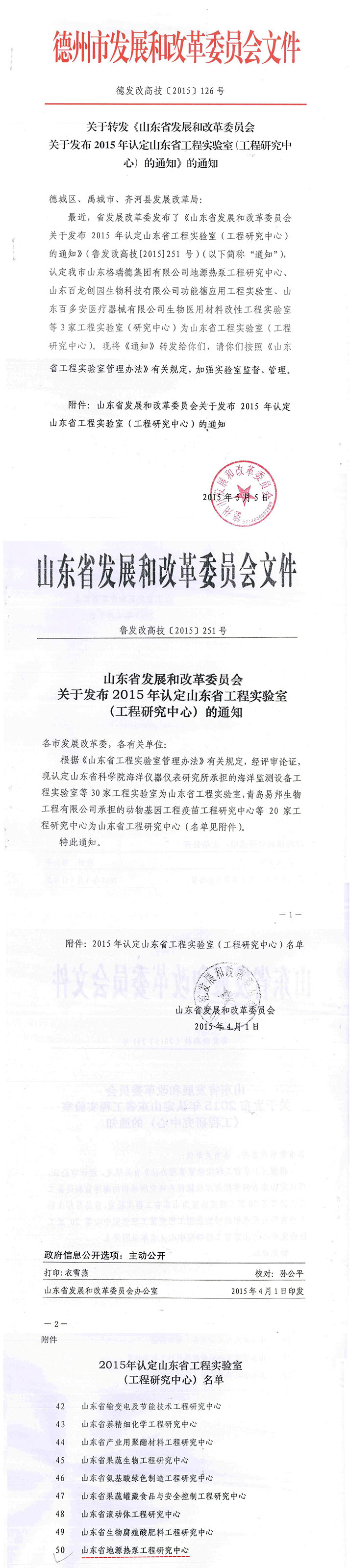 山東省地源熱泵工程研究中心批文