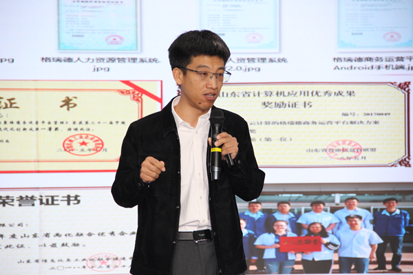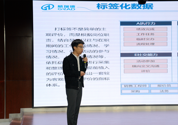 集團(tuán)信息化設(shè)計(jì)中心主任談慶松作為項(xiàng)目匯報(bào)人,利用有限的時間清晰、完整、流暢地闡述了集團(tuán)人力資源管理信息化歷程及標(biāo)簽化創(chuàng)新思路,并精確、沉穩(wěn)地回答了評委提問,最終喜獲創(chuàng)新大賽唯一的一等獎。