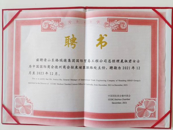 中國(guó)國(guó)際商會(huì)是經(jīng)中國(guó)國(guó)務(wù)院批準(zhǔn),于1988年成立的全國(guó)性商會(huì)組織,業(yè)務(wù)指導(dǎo)單位是中國(guó)貿(mào)促會(huì),現(xiàn)有會(huì)員7.8萬(wàn)家。中國(guó)國(guó)際商會(huì)德州商會(huì)作為中國(guó)企業(yè)投資柬埔寨的服務(wù)者,在格瑞德集團(tuán)成立柬埔寨辦事處,旨在更好地連接中柬資源,讓中柬合作走深走實(shí),積極服務(wù)德州企業(yè)“請(qǐng)進(jìn)來(lái)”、“走出去”,進(jìn)一步開(kāi)拓柬埔寨市場(chǎng),擴(kuò)大貿(mào)易合作。