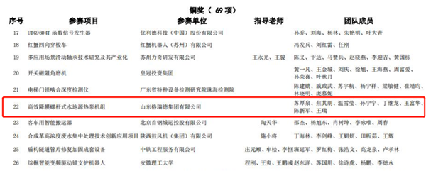 經(jīng)選拔、初賽、決賽,最后經(jīng)大賽評委會評審、組委會審核認定,格瑞德集團“高效降膜螺桿式水地源熱泵機組”項目最終獲得“2021第二屆全國機械工業(yè)設計創(chuàng)新大賽”銅獎。