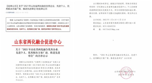 2021年12月,山東省兩化融合促進中心根據(jù)《山東省深化“互聯(lián)網(wǎng)+先進制造業(yè)”發(fā)展工業(yè)互聯(lián)網(wǎng)的實施方案》《關于組織2021年山東省兩化融合突出貢獻獎項評選活動的通知》等有關文件,經(jīng)業(yè)務主管部門初審推薦、專家評審等程序進行評選,格瑞德集團榮獲“2021年山東省兩化融合優(yōu)秀企業(yè)”