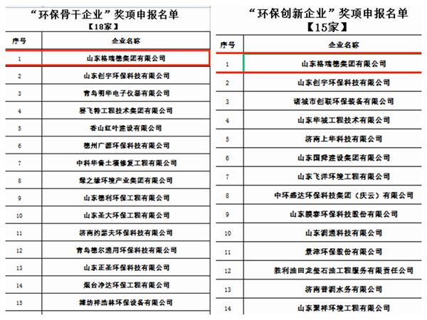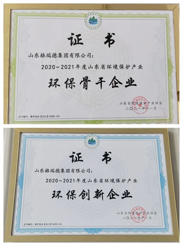 本次會議為山東省環(huán)境技術(shù)進步獎、山東省示范工程、環(huán)保骨干企業(yè)、環(huán)保創(chuàng)新企業(yè)、優(yōu)秀會員單位、優(yōu)秀環(huán)保企業(yè)家共計六個獎項頒發(fā)證書,格瑞德集團榮獲“環(huán)保創(chuàng)新企業(yè)”、“環(huán)保骨干企業(yè)”兩項榮譽。