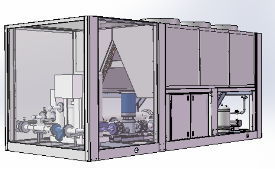 為解決上述技術(shù)問題,格瑞德團隊研發(fā)了一種一體式風冷螺桿機房系統(tǒng),該系統(tǒng)將風冷螺桿空調(diào)主機系統(tǒng)以及工程水系統(tǒng)集成到一起,形成一體式設計,集中控制、整體性強、簡化了機組安裝流程,僅需連接進出水管和電纜即可使用,工程周期短,無需另外設置冷凍機房,降低了系統(tǒng)成本。其中水循環(huán)系統(tǒng)配置可以針對不同用戶需求進行定制,便于工程推廣應用。這一技術(shù),填補了集團一體式風冷螺桿機房系統(tǒng)產(chǎn)品空白,提升集團在行業(yè)內(nèi)的競爭力。