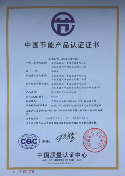 近日,主機(jī)公司風(fēng)冷模塊式冷熱水機(jī)組榮獲中國(guó)節(jié)能產(chǎn)品認(rèn)證證書。