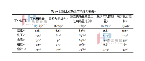 表3?1 歐盟工業(yè)熱泵市場(chǎng)潛力概要