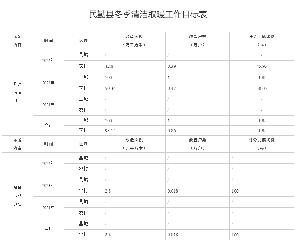 2024年度(2024年5月—2025年4月)全面完成項目竣工驗收、財務決算、審計等工作;總結(jié)典型經(jīng)驗,形成民勤縣冬季清潔取暖項目總體評價報告。