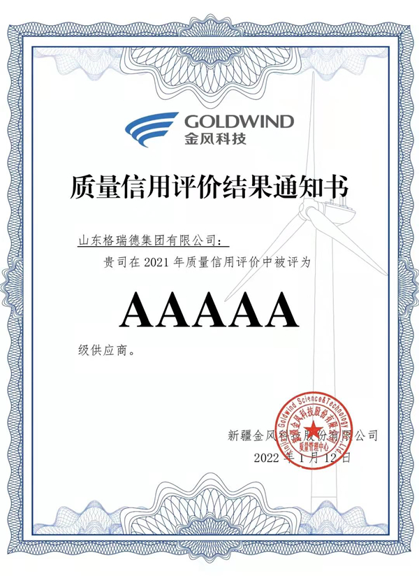 格瑞德榮獲金風(fēng)科技“5A級(jí)供應(yīng)商”殊榮