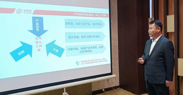 3月2日下午2時,湖北分公司召開2023年客戶聯(lián)誼會,集團執(zhí)行總裁管志廣致辭,歡迎參會客戶并介紹格瑞德集團的軟硬件實力和運營發(fā)展模式,他表示集團高度重視銷售市場的開發(fā)與鞏固,拓展合作方式,為廣大客戶宣傳與使用格瑞德產(chǎn)品給予了充分的信心和底氣。