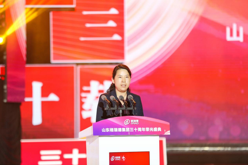 德州市德城區(qū)人民政府副區(qū)長、黨組成員劉桂芝首先對山東格瑞德集團有限公司成立30周年致以祝賀,肯定了集團30年來的發(fā)展成績。他表示,格瑞德作為德城新能源裝備產(chǎn)業(yè)的龍頭企業(yè),業(yè)產(chǎn)品覆蓋新能源、新材料、節(jié)能環(huán)保等五大領(lǐng)域,今天格瑞德的5項榮譽揭牌、8個重點項目啟動,必將是格瑞德發(fā)展歷程上濃墨重彩的一筆,也是德城工業(yè)高質(zhì)量發(fā)展的又一重要成果。