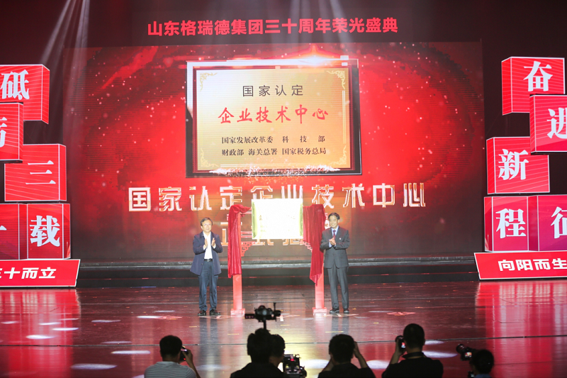 多年來,山東格瑞德集團有限公司專注技術(shù)創(chuàng)新、人才培養(yǎng)和平臺搭建,取得了不菲的成績,被評為德州市同行業(yè)唯一一家“國家認定企業(yè)技術(shù)中心”。據(jù)了解,國家認定企業(yè)技術(shù)中心是由國家授予的,國內(nèi)規(guī)格最高、影響力最大的技術(shù)創(chuàng)新平臺之一,它代表著格瑞德在創(chuàng)新人才、技術(shù)積累、創(chuàng)新平臺、技術(shù)產(chǎn)出和創(chuàng)新效益等方面在行業(yè)中的領(lǐng)先地位。慶典現(xiàn)場,德州市人民政府副市長、民進市委主委陳曉強,山東格瑞德集團有限公司董事長管印貴共同為“國家認定企業(yè)技術(shù)中心”揭牌,未來,這一平臺必將帶動全市新能源新材料產(chǎn)業(yè)的發(fā)展,為行業(yè)科技創(chuàng)新賦能。