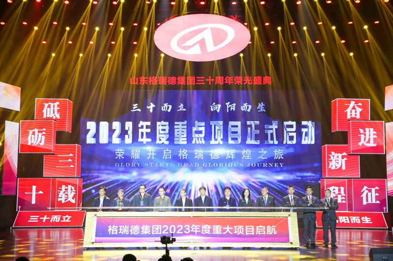 2023年山東省政府報告提出推動實現(xiàn)“五個新躍升”,聚心提氣實現(xiàn)高質(zhì)量發(fā)展,為聚焦行業(yè)視線、突顯研發(fā)實力,釋放推動德州實體經(jīng)濟穩(wěn)步前進的強勁信號,展現(xiàn)德州市“企業(yè)興、產(chǎn)業(yè)旺”的良好營商環(huán)境,山東格瑞德集團有限公司特舉辦三十周年慶典。