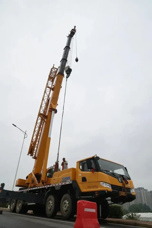 工程車正在吊裝暖氣管道