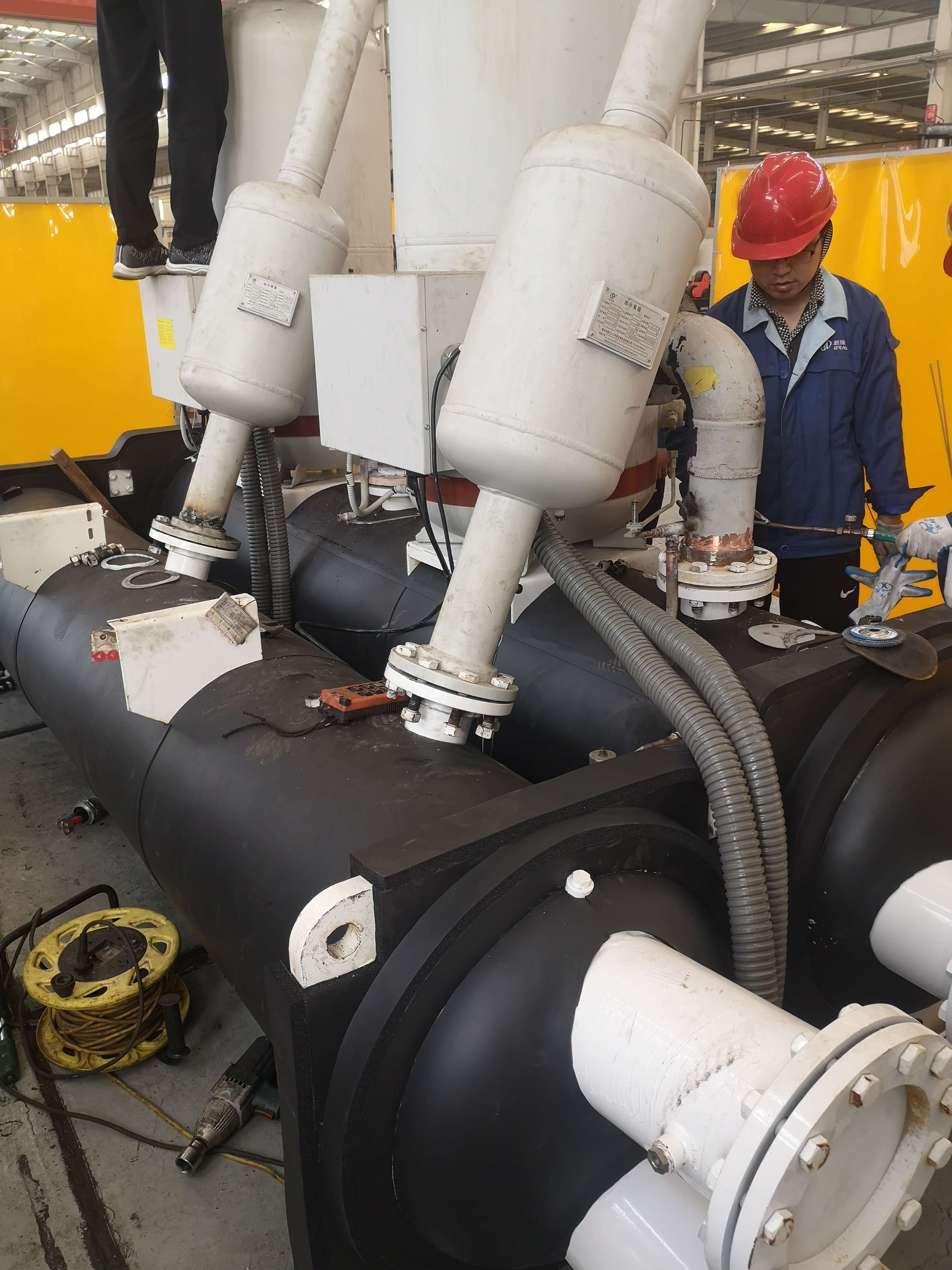 現(xiàn)場(chǎng)使用的是江蘇希赫爾的雙螺桿工業(yè)冷水機(jī)組(蒸發(fā)冷)機(jī)組,由于換熱器損壞影響了正常運(yùn)行。格瑞德公司為其定做了一臺(tái)新的蒸發(fā)器,安裝尺寸完全一致。新蒸發(fā)器的安裝使得機(jī)組能夠重新正常運(yùn)行,保障了浙江利安隆新材料生產(chǎn)過(guò)程中的溫度控制需求。