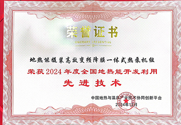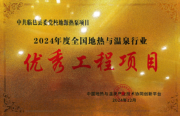 開幕式結(jié)束后,大會(huì)舉行頒獎(jiǎng)典禮,集團(tuán)中共臨邑縣委黨校地源熱泵項(xiàng)目獲得“2024年度全國地?zé)崤c溫泉行業(yè)優(yōu)秀工程項(xiàng)目”,集團(tuán)地?zé)崮芮搜b高效變頻降膜一體式熱泵機(jī)組獲得“2024年度全國地?zé)崮荛_發(fā)利用先進(jìn)技術(shù)”,集團(tuán)獲評(píng)“2024年度全國地?zé)崤c溫泉行業(yè)突出貢獻(xiàn)單位”,再次彰顯集團(tuán)在地?zé)犷I(lǐng)域的突出成績。