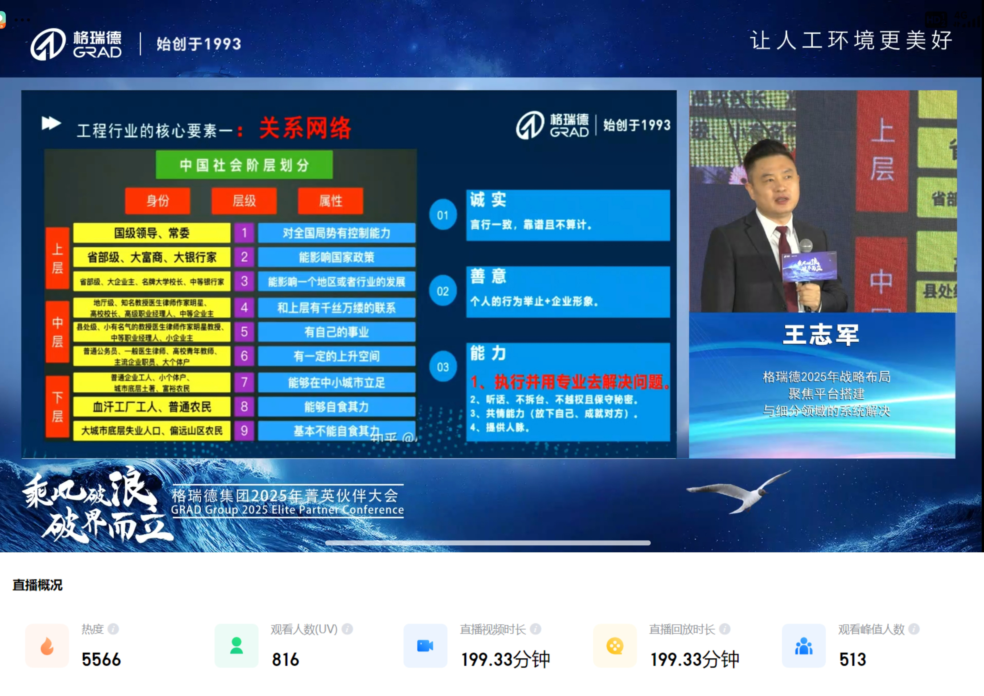 集團(tuán)總經(jīng)理王志軍表示,格瑞德人就是航行于汪洋大海的舵手,乘風(fēng)破浪,勇往直前。積極尋找突破和創(chuàng)新,應(yīng)對各種風(fēng)險(xiǎn)和挑戰(zhàn),實(shí)現(xiàn)新的發(fā)展和跨越。同時(shí)他深度解讀了2025年的戰(zhàn)略規(guī)劃,藍(lán)圖宏偉且目標(biāo)清晰。他著重強(qiáng)調(diào)了公司在研發(fā)創(chuàng)新、市場拓展以及客戶服務(wù)等方面的全面升級,旨在通過全方位的努力,推動公司戰(zhàn)略目標(biāo)的穩(wěn)步實(shí)現(xiàn)。王總表示,“以德為基、以人為本、顧客至上”始終是格瑞德集團(tuán)及全體職工的核心價(jià)值觀,其中顧客至上源于持續(xù)輸出優(yōu)質(zhì)的產(chǎn)品、提供優(yōu)質(zhì)的服務(wù),讓客戶感受到完美的客戶體驗(yàn)。同時(shí)王總綜合分析目前經(jīng)濟(jì)環(huán)境、行業(yè)趨勢等情況,引導(dǎo)各位菁英2025年業(yè)務(wù)發(fā)力重點(diǎn),為行業(yè)可持續(xù)發(fā)展輸入強(qiáng)勁的動力。