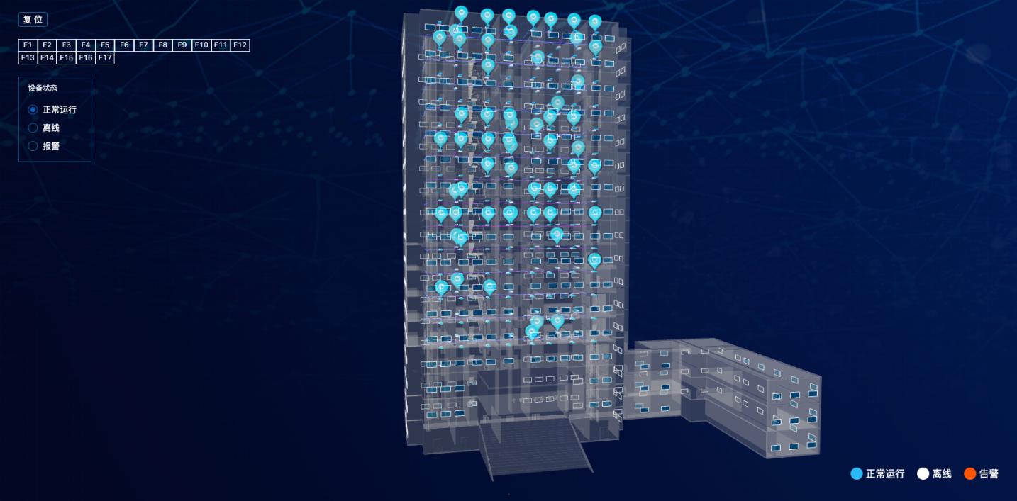 該項(xiàng)目以智慧樓宇為整體目標(biāo),以智慧暖通軟件平臺(tái)為底座,實(shí)現(xiàn)了中央空調(diào)系統(tǒng)、新風(fēng)系統(tǒng)、消防系統(tǒng)、能源管理、環(huán)境監(jiān)測(cè)整體智能化,并將系統(tǒng)與園區(qū)管理系統(tǒng)進(jìn)行高度集成,實(shí)現(xiàn)了設(shè)備及數(shù)據(jù)的互聯(lián)互通。