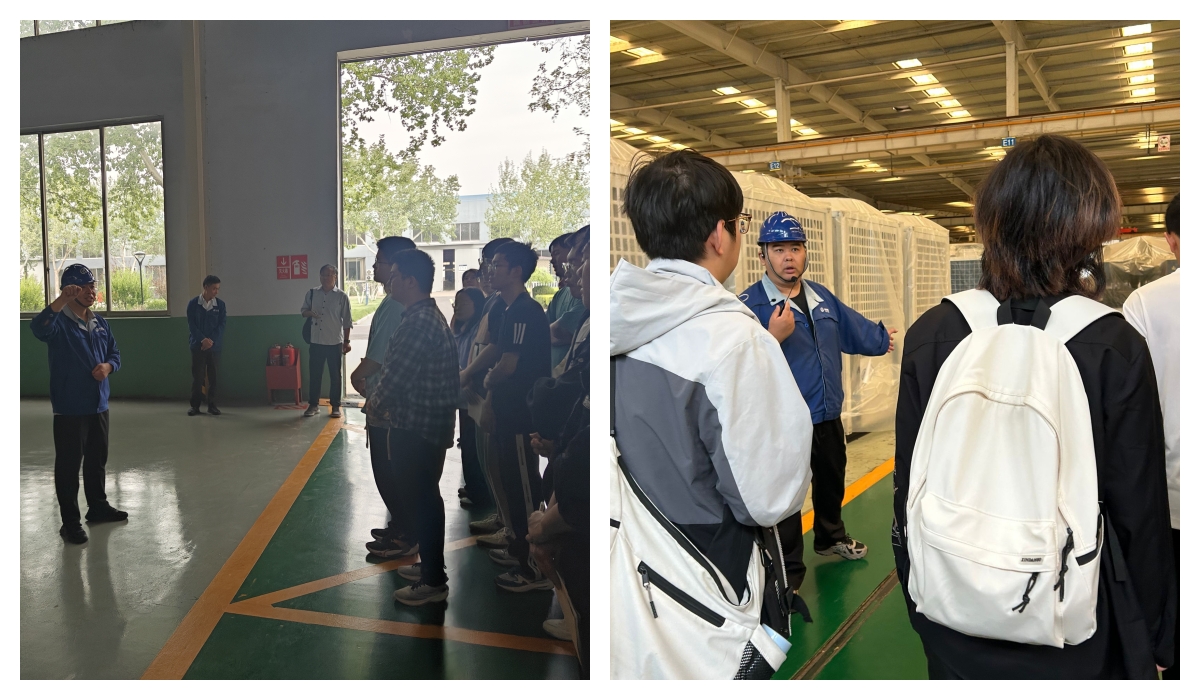 在能源工程公司,單元機(jī)產(chǎn)品線總經(jīng)理白俊明、生產(chǎn)部李雪峰、風(fēng)冷技術(shù)部鄧范毅等技術(shù)人員不僅為學(xué)生們詳細(xì)講解了產(chǎn)品理論知識,還認(rèn)真開展了參觀前的安全教育,隨后帶領(lǐng)學(xué)生們走進(jìn)車間,進(jìn)行實地參觀學(xué)習(xí)。