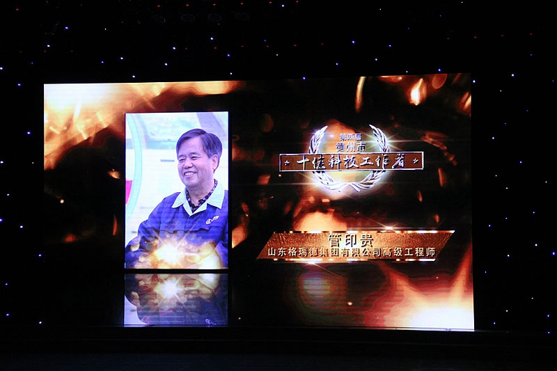 12月18日,我市舉行第四屆十佳科技工作者頒獎儀式。山東格瑞德集團有限公司董事長、高級工程師管印貴被授予“十佳科技工作者”稱號。省科協(xié)副主席于洪文,市委常委、統(tǒng)戰(zhàn)部部長彭小毛,副市長馬俊昀,市政協(xié)副主席康志民、辛志才出席。