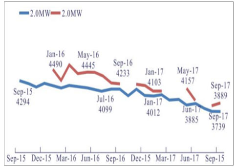 風電機組部分機型投標均價走勢變化(元/千瓦)