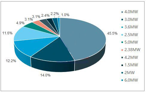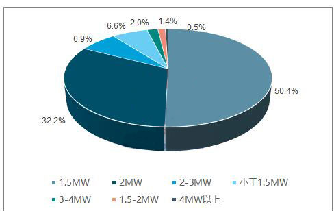 運行穩(wěn)定。由于不存在障礙物等原因,海上風電機組在風速和風向上相對穩(wěn)定,風切變(垂直方向風速變化)明顯小于陸風,風機運行更穩(wěn)定。單體容量大。2016年,我國陸上風電機組容量以 1.5MW與2MW為主,合計占比82.6%;海上風電則以4MW機組為主,2.5MW 以上占比達80.8%。