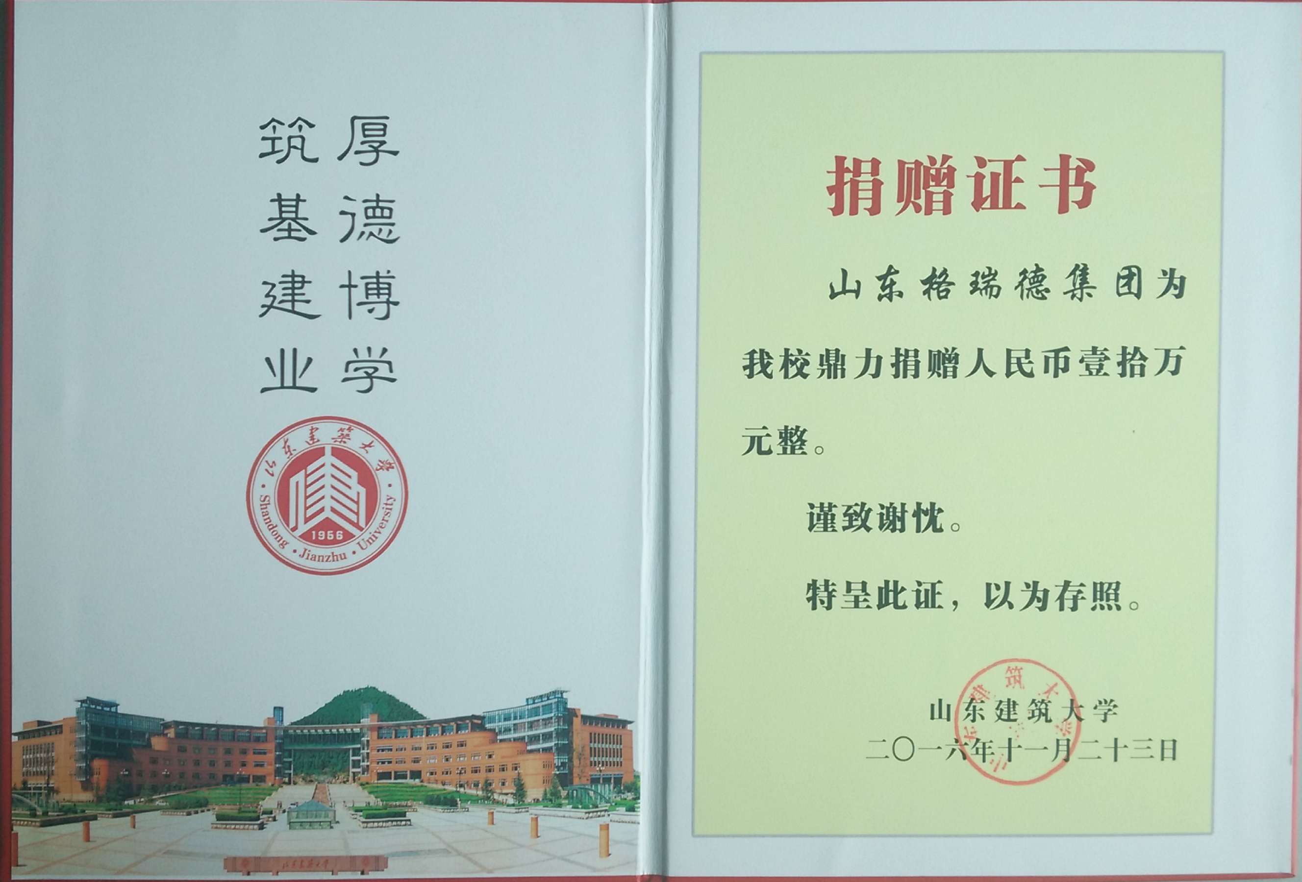 11月25日,山東格瑞德集團(tuán)捐贈(zèng)儀式暨校企合作座談會(huì)在山東建筑大學(xué)召開,集團(tuán)董事長(zhǎng)管印貴、行政總監(jiān)馬利忠以及業(yè)務(wù)接待部長(zhǎng)尹興華參會(huì),山建副校長(zhǎng)范存禮參會(huì)。
