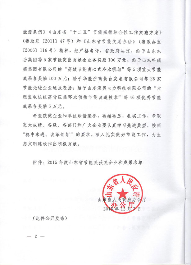 12月12日,山東省經濟和信息化委員會網站公布了魯政發(fā)字【2016】217號,山東省人民政府辦公廳關于公布山東省節(jié)能獎獲獎企業(yè)和成果名單的通報。