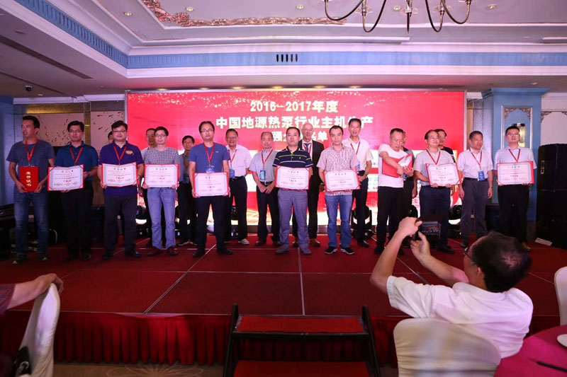 頒獎嘉賓與2016-2017年度中國地源熱泵行業(yè)主機(jī)生產(chǎn)十強(qiáng)企業(yè)代表合影