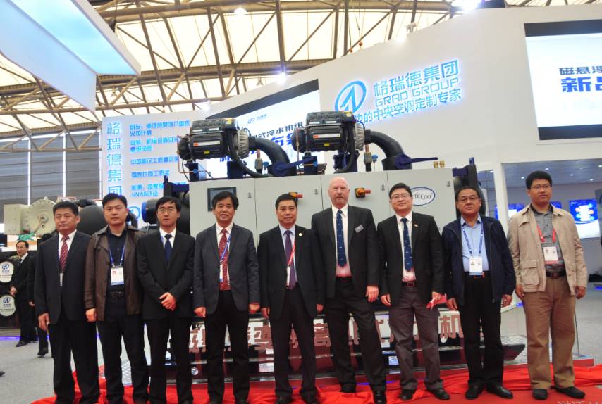 4月12日上午,第28屆中國(guó)制冷展上格瑞德在展臺(tái)召開新品發(fā)布會(huì),攜手北極制冷、丹佛斯推出了磁懸浮變頻離心式冷水機(jī)組。