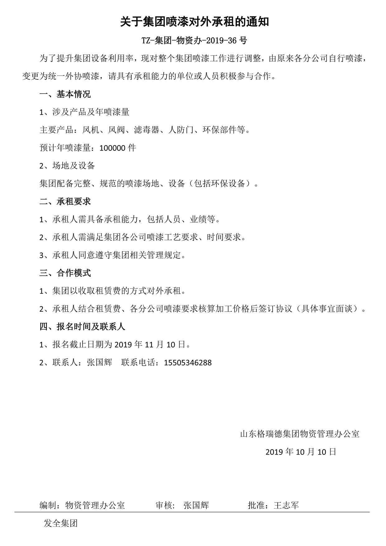關(guān)于集團(tuán)噴漆對外承租的通知
