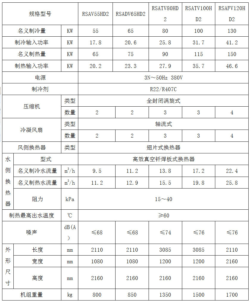 D2系列超低溫模塊熱泵機組參數(shù)表: