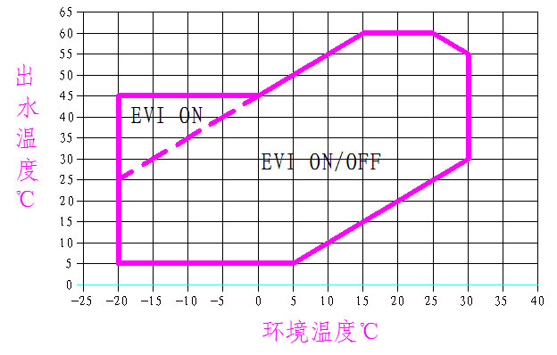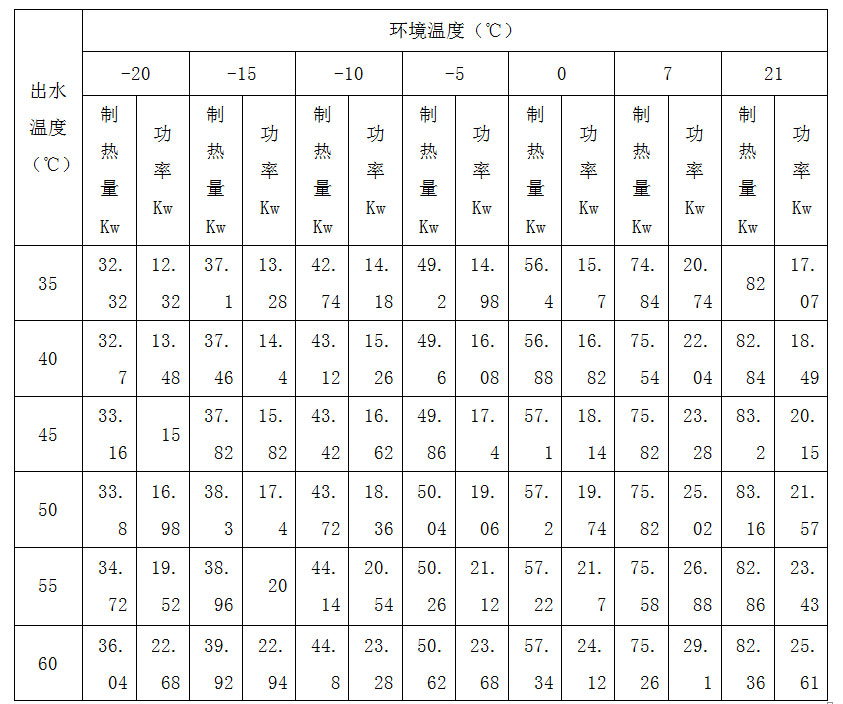 2、制熱標定工況:環(huán)境溫度7℃DB/6℃WB;熱水進水溫度40℃,出水溫度45℃。